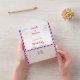 A fun yet stylish destination wedding design with a silhouette map of Zante (Zakynthos) Greek Island with cute faux postage marks and red, white and blue airmail stripes. Nice and easy to customise with your personal wedding details and a handy tear off RSVP card for your convenience.