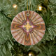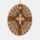 Here you see a fractal image in the shape of a cross with alternating orange and white stripes in the background. This ornament is perfect for anyone who is interested in Christian or religious artwork.