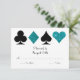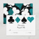 This wedding invitation features elegant typography and an accent graphic of card suits in white and blue green teal faux glitter. Perfect for a Las Vegas wedding in a little chapel off the strip, all you need is love and a witness or two!