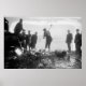 In 1923, a group of Federal Prohibition Agents and their helpers destroy Liquor containers with picks and axes.