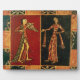 Image:173499 Detail from a wedding chest depicting a musician and a dancer (painted vellum on wood). French School, (12th century). Vannes Cathedral, France. Art, Fine Art.