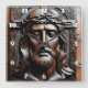 Detailed Carving of Jesus on a Stone Background Square Wall Clock