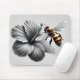 a honeybee pollinating a hibiscus flower. This black-and-white portrayal highlights the delicate textures of the bee's fuzzy body juxtaposed against the soft petals, revealing a world often overlooked.