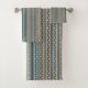 Detailed Multi Teal Tan Stripes Bath Towel Set