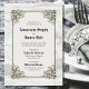 An elegant rustic ornate bleached wood carved framed wedding invitation with a vintage ambiance using Old English text to feature the bride and groom’s names. This is a detailed invitation which includes both the ceremony and reception venues.