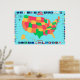 Detailed USA Map With State Flags Poster Anime Cartoon Comic Fiction Manga