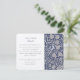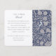 This exquisitely detailed information card is the perfect complement to a Victorian-themed wedding suite. A sophisticated navy blue background is adorned with an elaborate cream design featuring intertwined florals and vines, harkening back to a bygone era of elegance. The centre stage on this design is two stately love birds, each accompanied by an ornate monogram, symbolising the union of two hearts. This enclosure card not only informs but delights, with its vintage charm and intricate details. The reverse side provides space for additional wedding details, from directions to gift preferences, all conveyed in an equally elegant typeface. This card is a true keepsake, inviting guests to be a part of the love story while providing them with the finer details of the celebration.