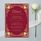 This burgundy and gold, elegant wedding enclosure card, with a vintage air, has a vintage golden frame with faux gold baroque decorations on a burgundy background. The title Details is written in faux gold, in an elegant calligraphic script. All text has a golden colour similar to the gold decorations of the borders. You can include details about the reception, the accomodations, the directions, the registry, the wedding website and more.