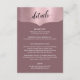 Customise this "Details Chic Script Metallic Rose Gold Wedding Enclosure Card" with a luxurious and chic two-colour metallic rose gold and vintage pink background, creating a bold and sophisticated look. Elegant calligraphy script adds a touch of timeless charm, making it perfect for couples seeking a modern yet classic design. Please get in touch with the store designer for further customisation if needed.
