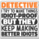 Funny Detective Sayings "Detective I Try To Make Things Idiot Proof But They Keep Making Better Idiots". Grab this Funny Detective design as a funny gifts for an awesome mum, dad or friend.