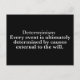 The scientist or philosopher definition of determinism is that every event is ultimately determined by causes external to the will. It is the determinist belief that free will is an illusion, because everything is predetermined. This philosophical postcard shows the doctrine that every cause is itself the effect of a prior cause. An interesting philosophy.