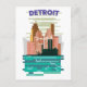 Detroit City skyline travel poster. Invitation Postcard