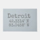 Detroit Michigan Latitude and Longitude map coordinates in distressed urban font