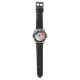 My husband loves the watch, he likes the dial, the graphics, the band, and it keeps perfect time.