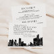 Vintage inspired landscape Detroit wedding invitations feature a unique etched image of the Downtown Detroit city skyline taken in the evening along the riverfront, combined with vintage Art Deco typography, and a classic black and white colour scheme. Two sided card design includes reception and wedding website information on the back of card.