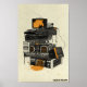 Phonographs, Atari, 8tracks and much more combined with ink splatters and drips. Monitors and technology dripping, digial collage