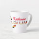 Personalised small latte mug features the Belgian flag in a rose motif. The flower has the black, yellow, and red colours of the tricolor. The stem reads BELGIUM, also in the tricolor. Now you can have your own Belgian Rose. Design across the entire mug. Makes a lovely gift for a housewarming party.