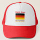 The word DEUTSCHLAND, in the German flag's horizontal striped tricolor of black, red and gold, sits below the flag of Germany. Above the flag is a place for your name in red letters. Use it to personalise your look. Or, create a gift of this trucker hat for someone else by adding his or her name, instead. If you prefer, remove the name and keep the German flag with the word DEUTSCHLAND underneath. Fun to wear to s German family reunion, too.