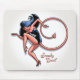 A girl devil sneaking on tip-toes, with her tail curled in a circle and, "Sneaky Devil" caption. Colour art on t-shirts, sweats, novelty gift swag.