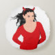 GIRL DRESSED IN DEVIL COSTUME FOR HALLOWEEN, COMPLETE WITH DEVIL HORNS