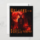 Welcome to the Devil’s Playground. Horror Halloween - Perfect for adult adults men man women woman teenager teenagers kids – Devil or Satan staring on a cemetery by night with a blood red moon. Scary and creepy terrifying monster or demon walking on a graveyard by Halloween with gravestones or tombstones and jack-o-lanterns. Glowing eyes and large ram horns.