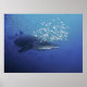 The strobe from my camera illuminated the school of fish over the head of the devilish looking sand tiger shark. Despite their appearance, they are quite harmless