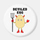 Deviled Egg text with a horned egghead holding a pitchfork is a funny play on the name of a favourite egg dish.