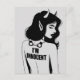 AI generated minimalist art of a devilish woman with a tattoo on her back of handcuffs and the words "I'm Innocent"