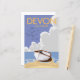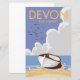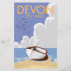 Devon For a Break. Beautiful vintage style travel poster art print of a retro style red bi plane flying over the landscape.
