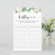 DEVON Greenery Wedding A-Z Bridal Shower Game Card