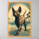 Colourful vivid art design of a Devon Rex cat at a tropical beach.