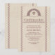 A handsome tan design on a soft, grunge background. The word "Confirmation" is crowned by a slotted, half-circle and a cross. The sides have a track a parallel squares. (FP)