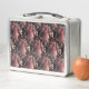 This is a standard metal lunchbox that appears to work just fine. We designed this box ourselves with an uploaded photo and custom text on the front and back. It looks absolutely beautiful except the front of the lunchbox is not centered like it shows in the photo. The print borders don't align with the inset flat part of the box where the preview photo online showed it perfectly centered in there. The back looks nice and centered though.