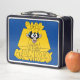 This is a standard metal lunchbox that appears to work just fine. We designed this box ourselves with an uploaded photo and custom text on the front and back. It looks absolutely beautiful except the front of the lunchbox is not centered like it shows in the photo. The print borders don't align with the inset flat part of the box where the preview photo online showed it perfectly centered in there. The back looks nice and centered though.