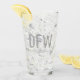 Beer glass features DFW- Airport abbreviation for Dallas/Fort Worth International Airport. Grungy urban grey text