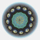 The Dharma wheel, at the centre of a kaleidoscopic design created from the colours and shapes in the wing of a giant silk moth.