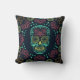 Dia de los Muertos Neon Floral Skull Throw Pillow.