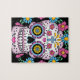 Dia de los Muertos (Day of the Dead) sugar skull is surrounded by colourful flowers.