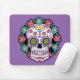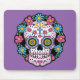 Dia de los Muertos (Day of the Dead) sugar skull is surrounded by colourful flowers.