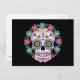 Dia de los Muertos (Day of the Dead) sugar skull is surrounded by colourful flowers.