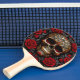 An ornately decorated skull is surrounded by red roses and black foliage on this wonderfully Gothic ping pong paddle. Perfect for those who enjoy the darker side.