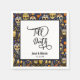 This engagement party napkin presents an intriguing and visually striking design, featuring a día de los muertos pattern background that serves as a dramatic canvas for the main illustration. The invitation itself is made of high-quality, textured paper with a velvety finish, adding a touch of luxury to the overall appearance.