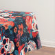 This tablecloth is a celebration of life, remembrance, and the vibrant spirit of Dia de los Muertos. It beautifully combines the intensity of red and orange florals with the calming, natural presence of blue leaves, all set against a backdrop of deep, inky black. This creates a visually stunning and emotionally evocative design, making it an ideal choice for adding a touch of cultural celebration and personal remembrance to your dining experience.