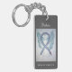 Awareness ribbon angel key chain features the art painting of a grey angel with a grey awareness ribbon that had a red blood drop on it. The art side notes "Diabetes Awareness" and the reverse side states "I Hope & Support Awareness for a Diabetes Cure!" Add your own custom words for personalised angel art cause awareness custom charm key chains! You can also remove the text for an art only angel pendant key chain. The grey awareness angel ribbon painting art keychains can be customised with personalised messages to make great awareness cause art key chains for fundraisers, awareness gifts, or other special events. Give this angel art keychain charm as an awareness ribbon gift for any occasion.