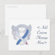 The guardian angel postcard art print features the picture of an angel holding a grey and blue awareness ribbon with a blood drop on it. Insulin Dependent Diabetes Mellitus (IDDM), also known as type 1 or juvenile diabetes, uses this ribbon to promote awareness for its cause. Add your own optional words or message to the postcard for personalised angel art cards! You can also remove the text for an art only angel postcard print. The grey and blue awareness angel ribbon painting postcards can be customised with personalised messages to make great awareness cause images or pictures for fundraisers, awareness gifts, or other special events. Give this angel art as an awareness ribbon gift for any occasion.