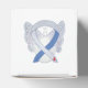 The guardian angel art party favour box features the painting of an angel holding a grey and blue awareness ribbon with a blood drop on it is displayed on this custom cause awareness apparel shirts. Insulin Dependent Diabetes Mellitus (IDDM), also known as type 1 or juvenile diabetes, uses this ribbon to promote awareness for its cause. Grey and blue awareness angel ribbon party favour boxes can be customised with personalised messages to make great thank you gifts for fundraisers, awareness education, or other special events or occasions.