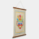 Diablo Huma Mask Tapestry - Beige Background, printed on fabric and trimmed with wooden top and bottom rails.. NOTE: Artwork is NOT woven but photo art of a woven Inca mask.