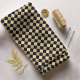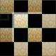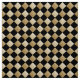 A diagonal chequerboard design in alternating solid black and gold damask. Rotate the image 45 deg. for a traditional horizontal/vertical check.
