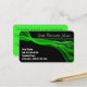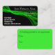 Get double use out of your business card when you also use it as an appointment card. On this design you see the front is all business and the back is used as an appointment reminder. And since it's a template design, you can change it up for your needs. This card is adorned with a sleek flowing bright green fractal. Fill in the template fields with your information front and back, remove information you don't need and/or click "Customise it" to select a font style, size and colour you prefer. In customise under the "Edit" then "Background" headings you can also change the background colour on the card front and back.