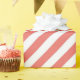 Diagonal pattern of pink and white stripes wrapping paper